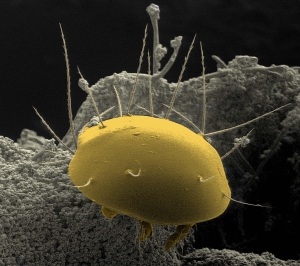 As phoresy is about dispersal, it is no wonder that this phenomenon gets more frequent the smaller the studied species are: small animals naturally don’t have the ability to move for large distances on their own, instead they have to rely on other dispersal mechanisms like anemochory (transport by air currents), hydrochory (transport by water) or said phoresy. Mites (Acari) are characterized by consistently small body sizes (Krantz and Walter 2009), and several groups of mites have indeed developed different strategies for dispersing through phoresy. In all these mites phoresy is restricted to one stage, either the (gravid) females or deutonymphs (Krantz and Walter 2009). Some mites, like gamasid deutonymphs, do not have any special morphological adaptations to phoresy at all, but freely move on their host’s body surface. Almost all other phoretic mites possess adaptations for attaching to their hosts, like ventral sucker plates in astigmatid deutonymphs or anal pedicels secreted by uropodid deutonymphs, both allowing the mites to adhere to smooth body surfaces (Ebermann 2004). Scutacarid mites, which are the main protagonists of the present paper, cling to their host by using enlarged claws on leg I.
