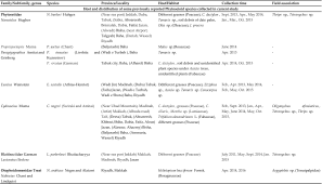The families Otopheidomenidae and Podocinidae include 30 and 32 species respectively worldwide (Halliday 1994; Menon et al. 2012; Yan et al. 2012).The phytoseioid mite fauna of SA is poorly known. Previously, 23 species including in eight genera of Phytoseiidae(Dabbour and Abdel-Aziz 1982; Fouly and Al-Rehiayani 2011; Alatawi 2011a, b; Negm et al. 2012 a, b; Basahih et al. 2015; Alatawi et al. 2016), one species each of families Blattisociidae and Otopheidomenidae have been reported from SA (Alatawi 2011a; Negm and Alatawi 2013).