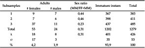 The predominance of females (Table 1, sex ratio) and immature stages was noted earlier by Domrow (1985) and Mariana et al. (2011), and these two works emphasised that a single female could generate a large offspring. In fact, a female bias is the canon for haplodiploid species and O. natricis is one of them, this is also a common feature of many Macronyssidae. They reproduce by arrhenotokous parthenogenesis, where females are diploid and males are the result of unfertilized eggs (Oliver, 1966). Its nidicolous behavior corresponds well with acarine haplodiploid clades having adaptations to live in patchy or ephemeral environments (Perotti and Braig, 2009).