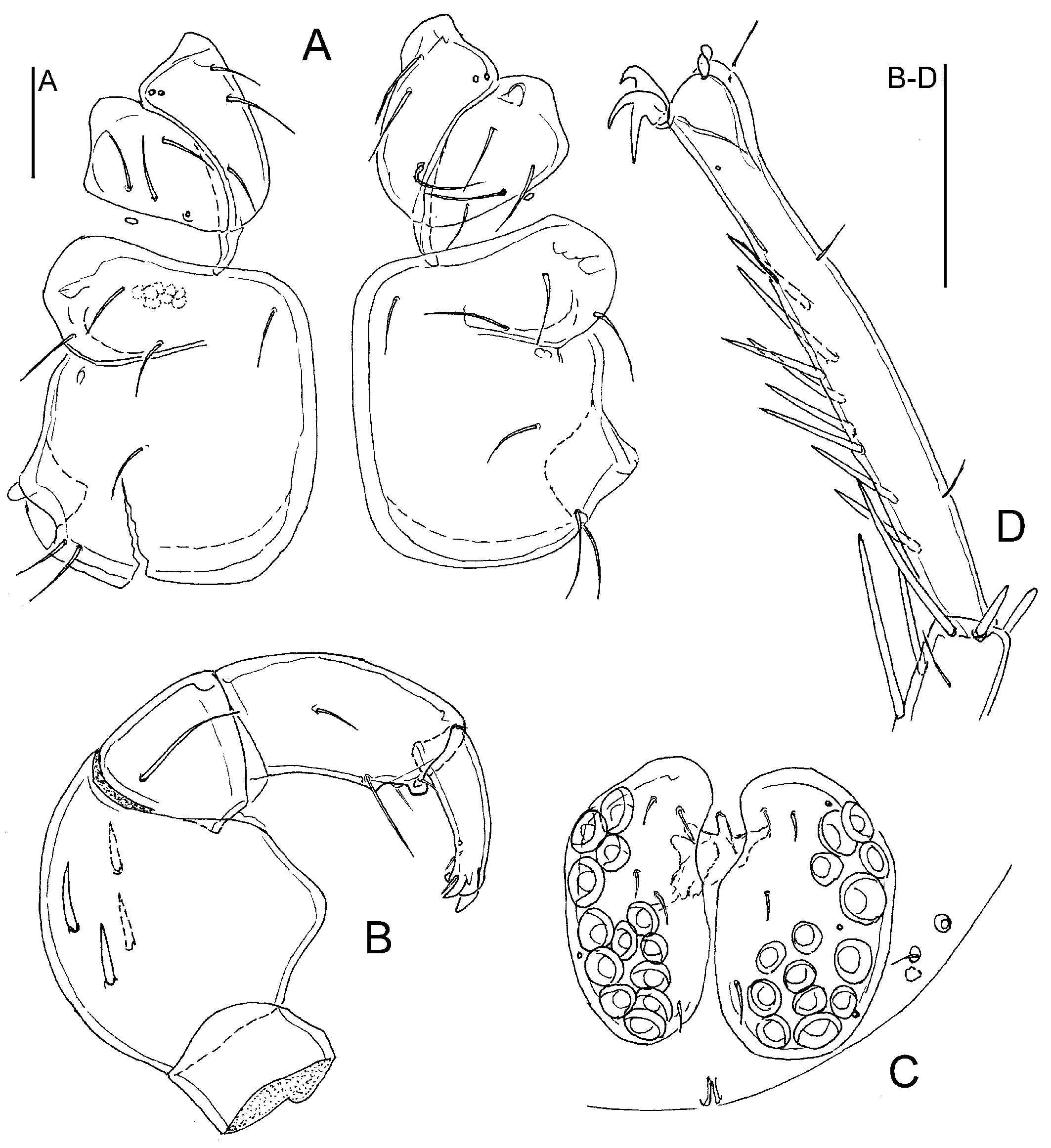 The collected specimens from Jammu and Kashmir match the original description of U. (M.) savadiensis in regard to shapes of coxal plates and genital fields (Fig. 3A, C), palps (Fig. 3B) and terminal segments of the fourth legs (Fig. 3D).
