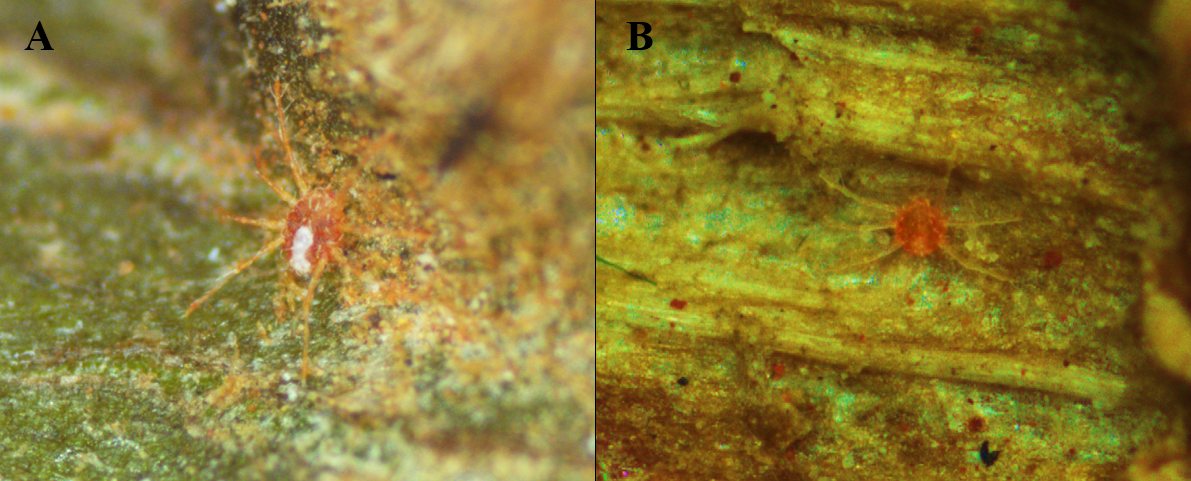 Body — Protonymph is also red, with two lateral prodorsal eyes and a dorsocentral opisthosomal white patch. Protonymph is dorsoventrally compressed, ovoid, or almost circular, and smaller than females. Body length 260 (Fig. 4A).