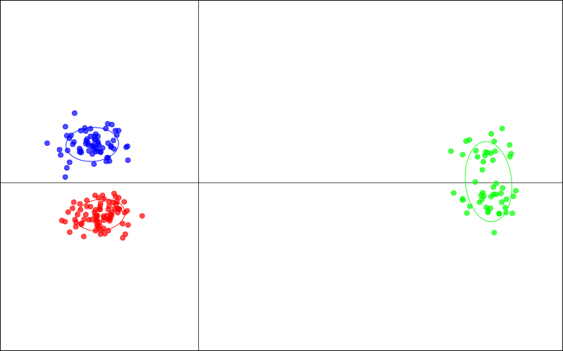 | Simulated data | Geographical plots of weighted mean of all ellipse values (i.e., individual genetic distances ar of Rousset 2000) and significant barrier (cells with differentiation values higher than expected under a random distribution (no FDR applied) are materialized with thick black borders) | Idem, Benjamini-Yekutieli FDR applied | MAPI analysis (no FDR applied) with subsampled (75/200) dataset | MAPI analysis (Benjamini-Yekutieli FDR applied) with subsampled (75/200) dataset | Best probability memberships | Probability memberships for cluster 1 | Probability memberships for cluster 2 | Probability memberships for cluster 3 | Probability memberships for cluster 4 | Probability memberships for cluster 5 | Best probability memberships | Probability memberships for cluster 1 | Probability memberships for cluster 2 | Probability memberships for cluster 3 | Probability memberships for cluster 4 | Probability memberships for cluster 5 | Scatter plot showing the first two components of the DAPC (when K*>2) or density plot showing the first principal component of the DAPC (when K*=2) | Probability memberships for cluster 1 | Probability memberships for cluster 2 | Probability memberships for cluster 3 | Probability memberships for cluster 4 | Probability memberships for cluster 5 | Scatter plot showing the first two components of the DAPC (when K*>2) or density plot showing the first principal component of the DAPC (when K*=2) | Probability memberships for cluster 1 | Probability memberships for cluster 2 | Probability memberships for cluster 3 | Probability memberships for cluster 4 | Probability memberships for cluster 5 |