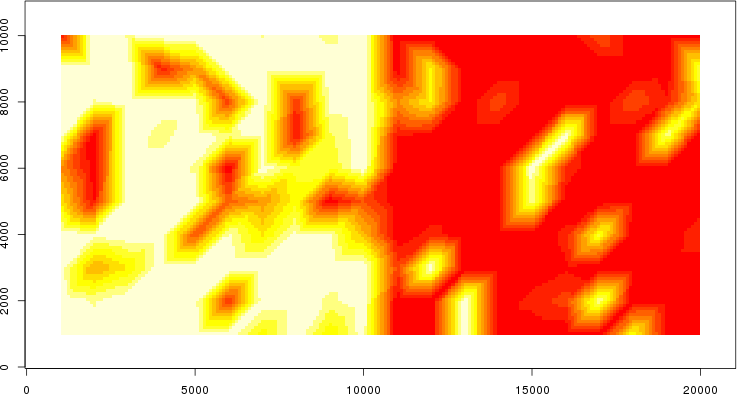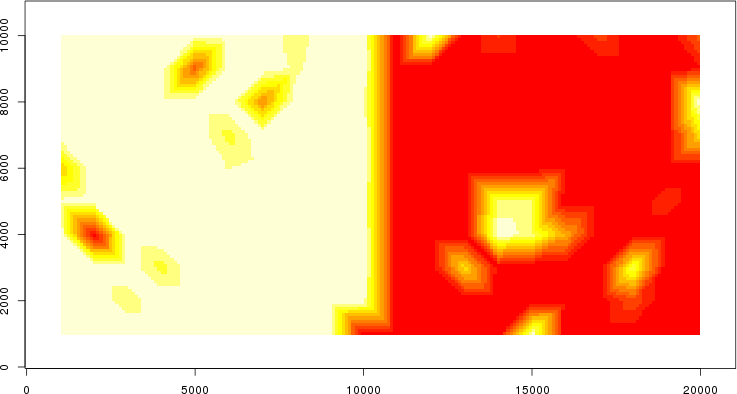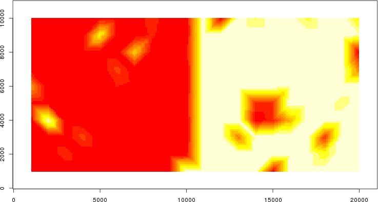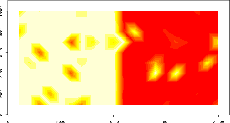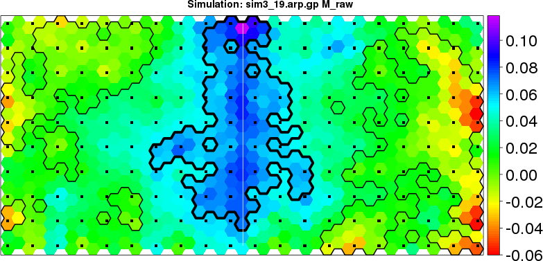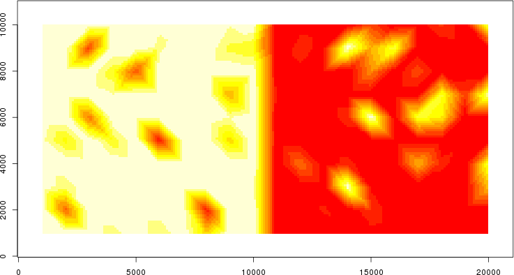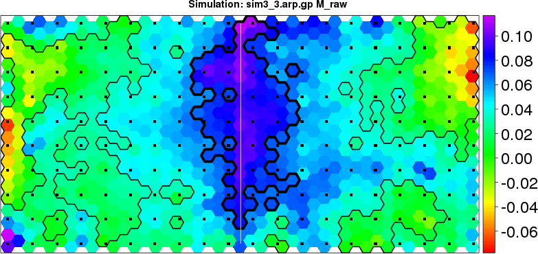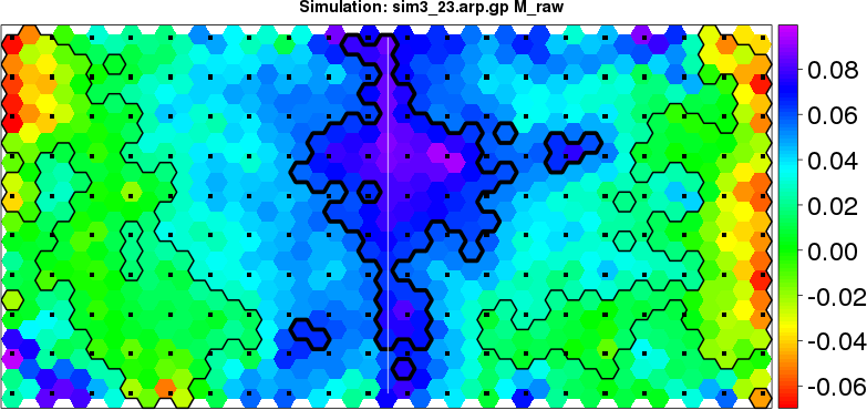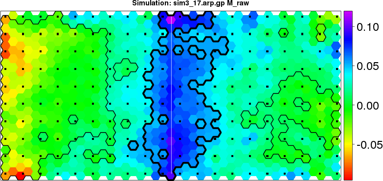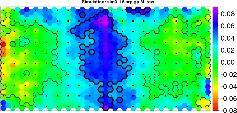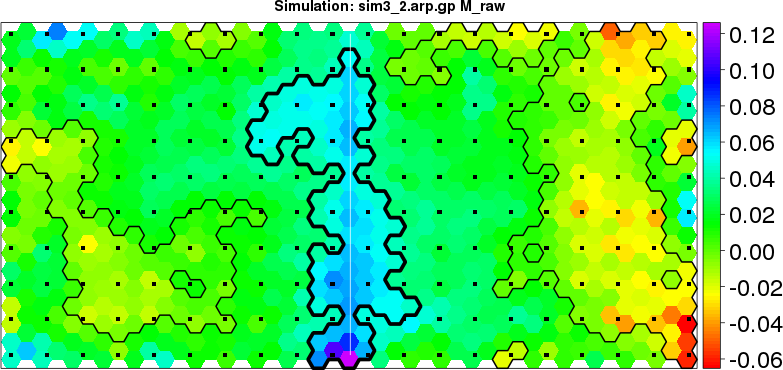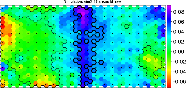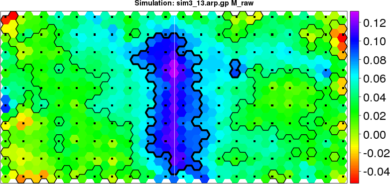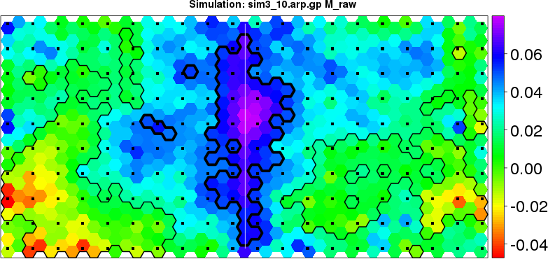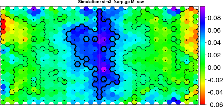 | Simulated data | Geographical plots of weighted mean of all ellipse values (i.e., individual genetic distances ar of Rousset 2000) and significant barrier (cells with differentiation values higher than expected under a random distribution (no FDR applied) are materialized with thick black borders) | Idem, Benjamini-Yekutieli FDR applied | MAPI analysis (no FDR applied) with subsampled (75/200) dataset | MAPI analysis (Benjamini-Yekutieli FDR applied) with subsampled (75/200) dataset | Best probability memberships | Probability memberships for cluster 1 | Probability memberships for cluster 2 | Probability memberships for cluster 3 | Probability memberships for cluster 4 | Probability memberships for cluster 5 | Best probability memberships | Probability memberships for cluster 1 | Probability memberships for cluster 2 | Probability memberships for cluster 3 | Probability memberships for cluster 4 | Probability memberships for cluster 5 | Scatter plot showing the first two components of the DAPC (when K*>2) or density plot showing the first principal component of the DAPC (when K*=2) | Probability memberships for cluster 1 | Probability memberships for cluster 2 | Probability memberships for cluster 3 | Probability memberships for cluster 4 | Probability memberships for cluster 5 | Scatter plot showing the first two components of the DAPC (when K*>2) or density plot showing the first principal component of the DAPC (when K*=2) | Probability memberships for cluster 1 | Probability memberships for cluster 2 | Probability memberships for cluster 3 | Probability memberships for cluster 4 | Probability memberships for cluster 5 |