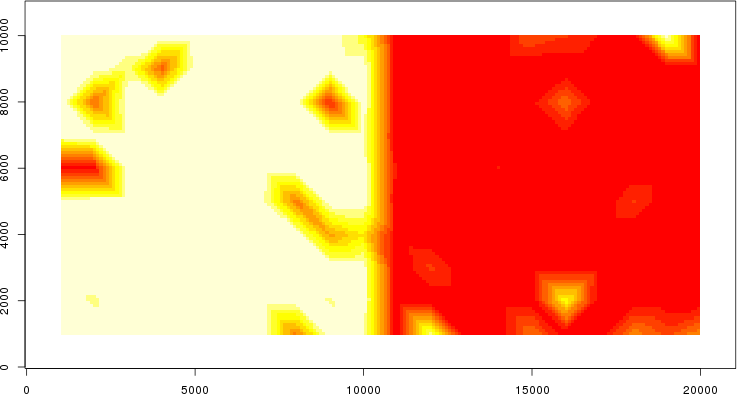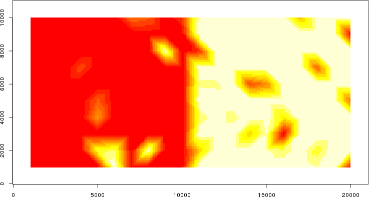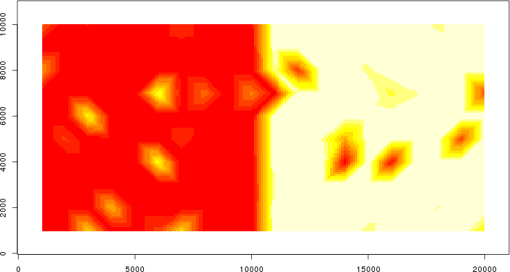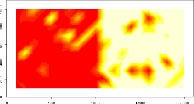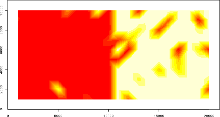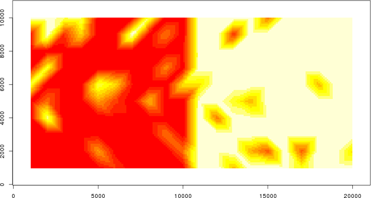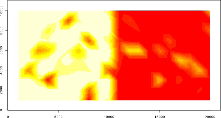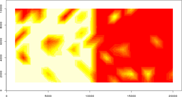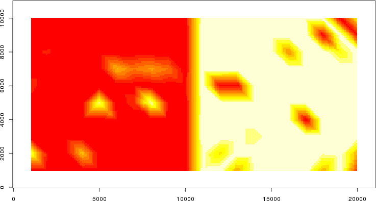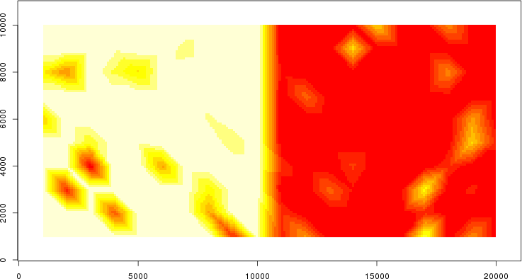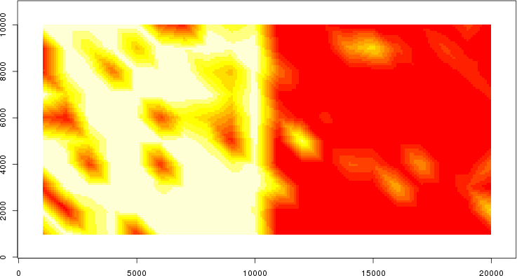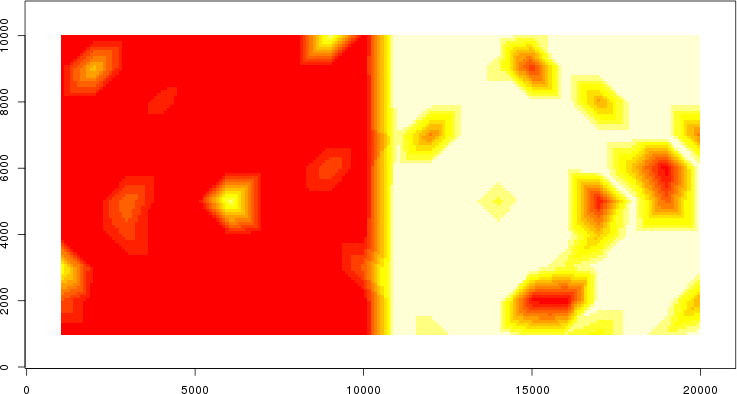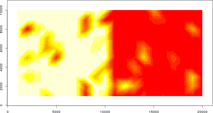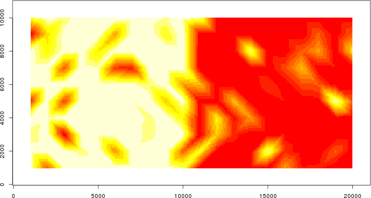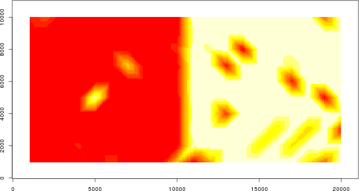 | Simulated data | Geographical plots of weighted mean of all ellipse values (i.e., individual genetic distances ar of Rousset 2000) and significant barrier (cells with differentiation values higher than expected under a random distribution (no FDR applied) are materialized with thick black borders) | Idem, Benjamini-Yekutieli FDR applied | MAPI analysis (no FDR applied) with subsampled (75/200) dataset | MAPI analysis (Benjamini-Yekutieli FDR applied) with subsampled (75/200) dataset | Best probability memberships | Probability memberships for cluster 1 | Probability memberships for cluster 2 | Probability memberships for cluster 3 | Probability memberships for cluster 4 | Probability memberships for cluster 5 | Best probability memberships | Probability memberships for cluster 1 | Probability memberships for cluster 2 | Probability memberships for cluster 3 | Probability memberships for cluster 4 | Probability memberships for cluster 5 | Scatter plot showing the first two components of the DAPC (when K*>2) or density plot showing the first principal component of the DAPC (when K*=2) | Probability memberships for cluster 1 | Probability memberships for cluster 2 | Probability memberships for cluster 3 | Probability memberships for cluster 4 | Probability memberships for cluster 5 | Scatter plot showing the first two components of the DAPC (when K*>2) or density plot showing the first principal component of the DAPC (when K*=2) | Probability memberships for cluster 1 | Probability memberships for cluster 2 | Probability memberships for cluster 3 | Probability memberships for cluster 4 | Probability memberships for cluster 5 |