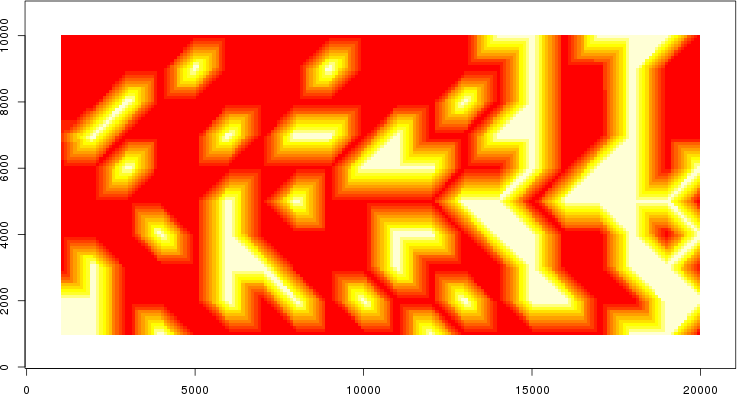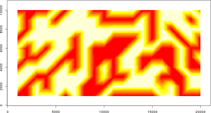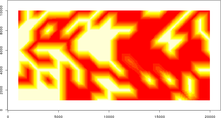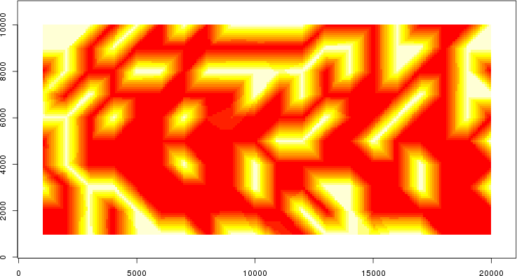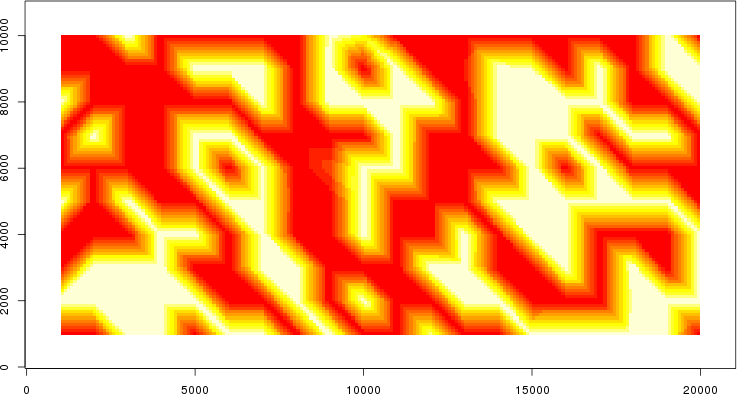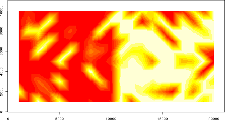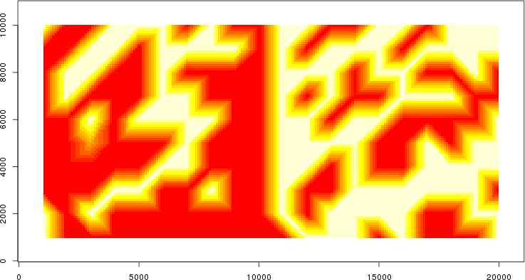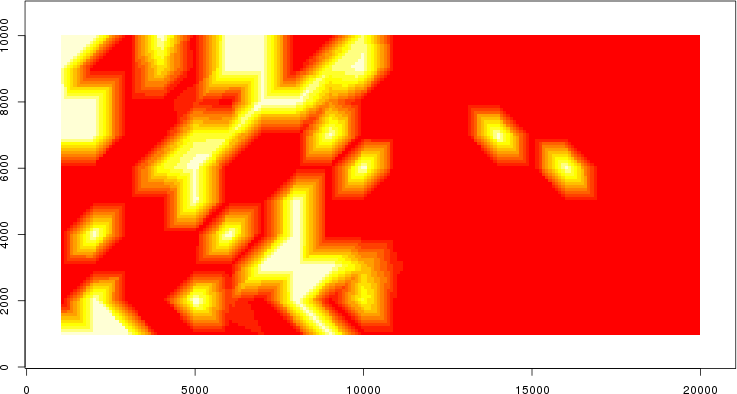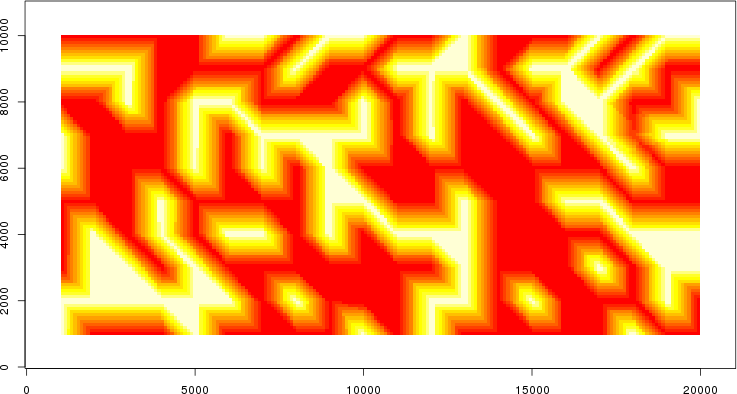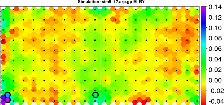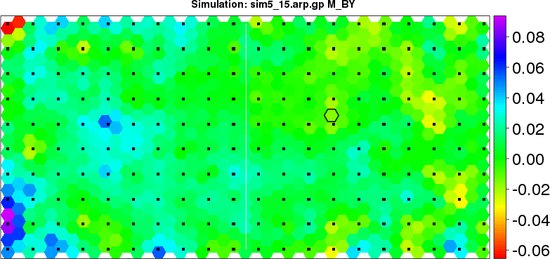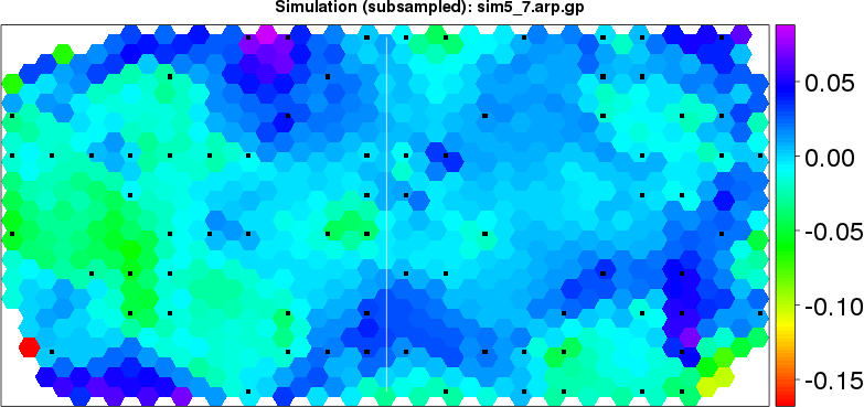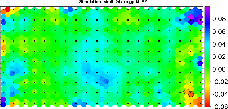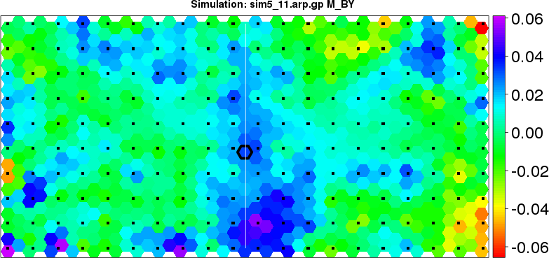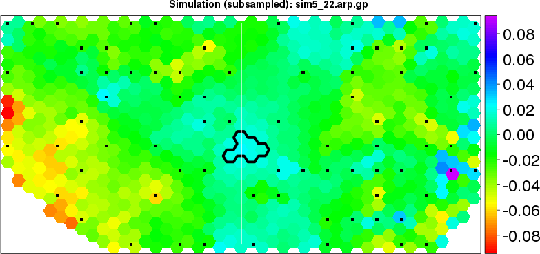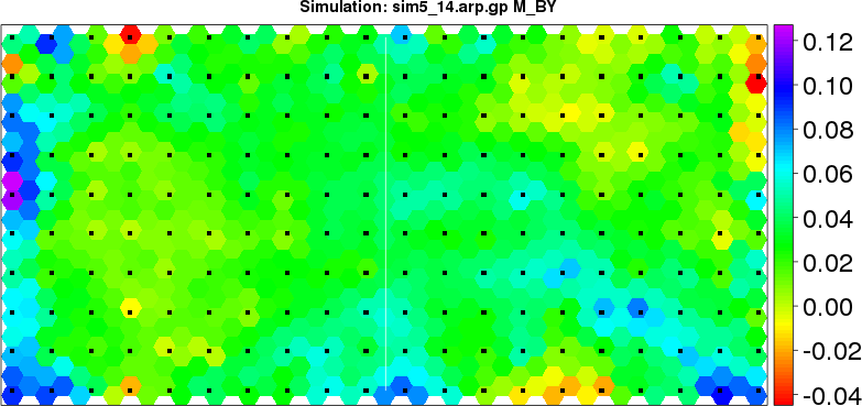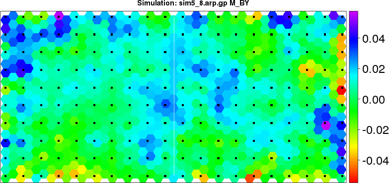 | Simulated data | Geographical plots of weighted mean of all ellipse values (i.e., individual genetic distances ar of Rousset 2000) and significant barrier (cells with differentiation values higher than expected under a random distribution (no FDR applied) are materialized with thick black borders) | Idem, Benjamini-Yekutieli FDR applied | MAPI analysis (no FDR applied) with subsampled (75/200) dataset | MAPI analysis (Benjamini-Yekutieli FDR applied) with subsampled (75/200) dataset | Best probability memberships | Probability memberships for cluster 1 | Probability memberships for cluster 2 | Probability memberships for cluster 3 | Probability memberships for cluster 4 | Probability memberships for cluster 5 | Best probability memberships | Probability memberships for cluster 1 | Probability memberships for cluster 2 | Probability memberships for cluster 3 | Probability memberships for cluster 4 | Probability memberships for cluster 5 | Scatter plot showing the first two components of the DAPC (when K*>2) or density plot showing the first principal component of the DAPC (when K*=2) | Probability memberships for cluster 1 | Probability memberships for cluster 2 | Probability memberships for cluster 3 | Probability memberships for cluster 4 | Probability memberships for cluster 5 | Scatter plot showing the first two components of the DAPC (when K*>2) or density plot showing the first principal component of the DAPC (when K*=2) | Probability memberships for cluster 1 | Probability memberships for cluster 2 | Probability memberships for cluster 3 | Probability memberships for cluster 4 | Probability memberships for cluster 5 |